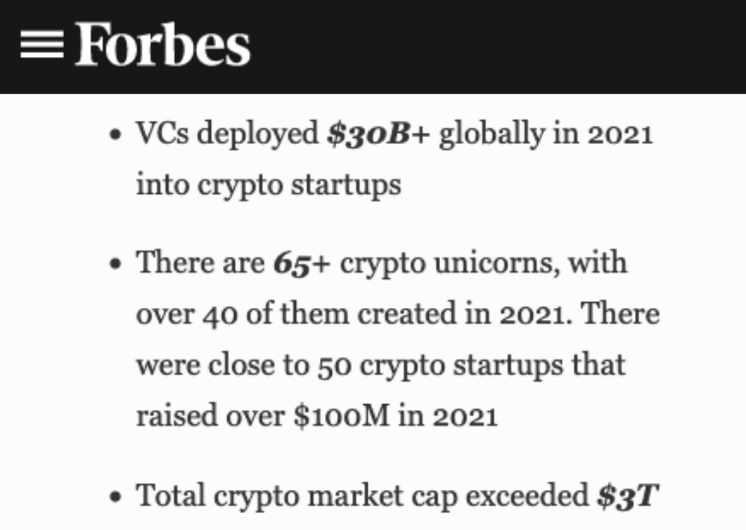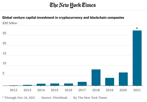 For 365 days, in 2021, VCs have invested about $20 million daily in blockchain/Web3 companies (source: Pitchbook).