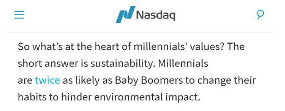 57% of millennials have sold stock when they thought the company was not serving the best interest of society or our planet